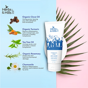 • Unlock the Beauty of Clear Skin with Herbs & Hills Anti-Acne Face Pack - Your Skincare Solution!" Our Anti-Acne Face Pack is made from the potent high-quality blend of organic tea tree oil, jasad bhasma, organic clove oil, turmeric rhizome extract & oil and more. These ingredients fight acne, reduce inflammation, and promote clear, radiant skin.