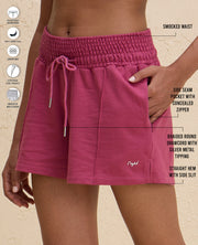 Nykd By Nykaa Summer Essential Smocked Waist Lounge Cotton Terry Shorts -NYLE603-Grape