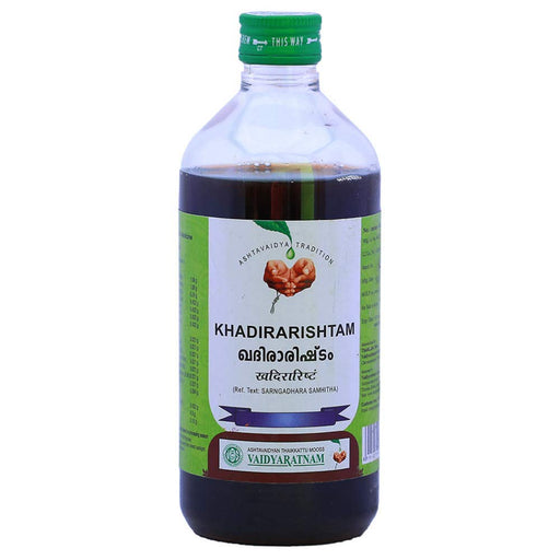 Vaidyaratnam Khadirarishtam Vaidyaratnam Khadirarishtam is a classic Ayurvedic formulation. It is also called Khadirarishta. Form: Liquid Type: He...