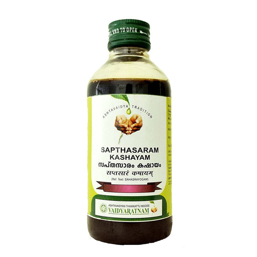 Vaidyaratnam Sapthasaram Kashayam - 200Ml Vaidyaratnam Sapthasaram Kashayam is an Ayurvedic formulation. The supplement is also known as Saptasara ...