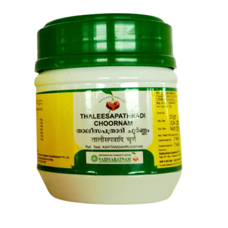 Vaidyaratnam Thaleesapathradi Choornam Available in 50gm/100 gm Vaidyaratnam Thaleesapathradi Choornam is an Ayurvedic formulation. The herbal powd...