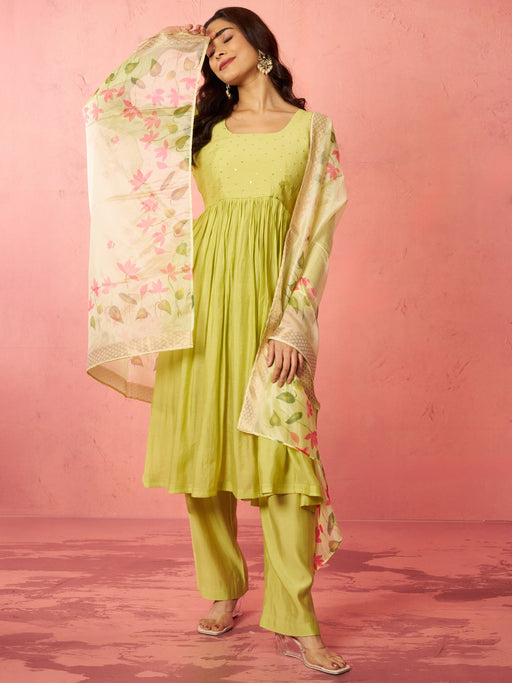 View full detailsWomen's Mint Green Silk Anarkali Kurta Set