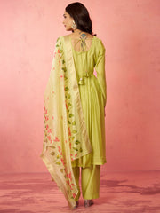 Shine bright this Diwali with Vastramay's mint green silk blend anarkali kurta set. Features stunning sequin embroidery on premium silk fabric, paired with comfortable silk straight pant and vibrant multicolour organza dupatta.