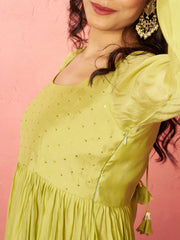 Women's Mint Green Silk Anarkali Kurta Set