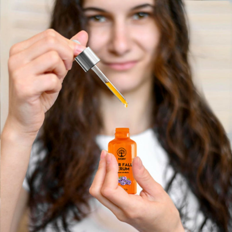 Experience the transformative power of Ivory Natural Hair Fall Serum, your ultimate solution for combating hair fall and stronger hair. This carefully crafted serum is the best for less hair, enriched with potent, natural ingredients, making it the go-to ayurvedic hair growth serum. Say goodbye to worries with this exceptional serum that not only tackles less hair but also nourishes and revitalizes your locks. Discover the beauty of a natural approach to hair care that combines the best of nature and science. Choose the ultimate solution for strong, vibrant, and visible hair.