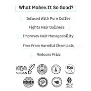 - No more frizzy hair with the Coffee Hair Serum! Packed with Pure Arabica Coffee, the serum also improves hair manageability and strengthens hair strands. Users experienced 5X smoother & no frizz hair after the application of Coffee Hair Serum when compared to a neutral product.