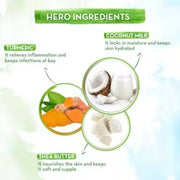 • Coconut Milk, shea butter, Aloe Vera, and Turmeric