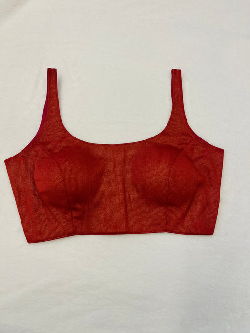 Details Fabric : Dhupion Color : Rust Orange Stitching Type : Fully Stitched Cups Type: Padded Sleeves: Sleeveless Neckline : Round Neck Note : Ac...