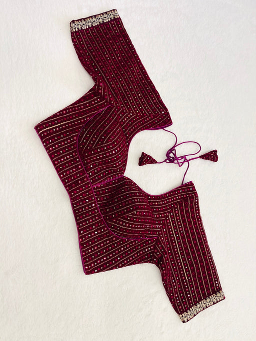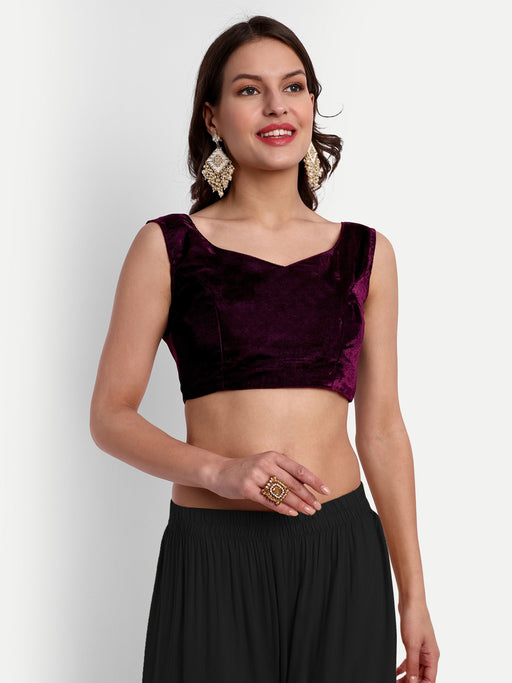 Details: Fabric : Velvet Color : Purple Stitching Type : Fully Stitched Cups Type: Padded Neckline : V Neck Wash care: Normal Wash Note : Actual...