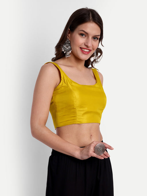 Details Fabric : Cross Thread Silk Color : Yellow Stitching Type : Fully Stitched Cups Type: Padded Neckline : Round Neck Wash care: Normal Wash No...