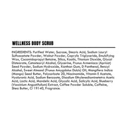 Purified Water, Sucrose, Stearic Acid, Sodium Lauryl Sulfoacetate Powder, Walnut Powder, Caprylic Triglyceride, Emulsifying Wax, Cocamidopropyl Betaine, Silica, Kaolin, Titanium Dioxide, Glycol Distearate, Cetostearyl Alcohol, Glycerine, Prunus Armeniaca (Apricot) Seed Powder, Sodium Hydroxide, Xanthan Gum, D Panthenol, Benzyl Alcohol, Sweet Almond (Prunus Amygdalus Dulcis) Oil, Mangifera Indica (Mango) Seed Butter, Polysorbate 20, Niacinamide, Vitamin E Acetate, Hyaluronic Acid, Sodium Benzoate, Disodium EDTA, Lactic Acid, Mandelic Acid, Glycolic Acid, Salicylic Acid, Blueberry Extract, Coffee Powder Soluble, Caffeine, Shea Butter, CI 19140, Fragrance.