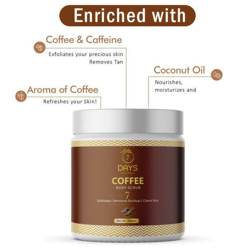 7 Days Coffee Body ScrubAbout the Product:7 Days Coffee Scrub reaches deep down into skin pores & pulls out deep-seated impurities as a result ...