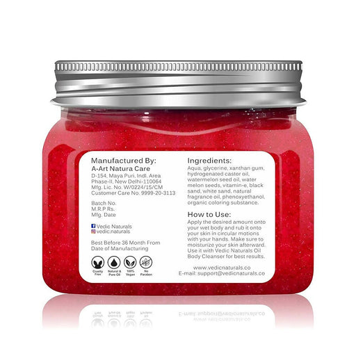 Vedic Naturals Watermelon Body ScrubFeatures Mild skin exfoliation: An exfoliating scrub that is so mild on your skin that it feels like the softes...