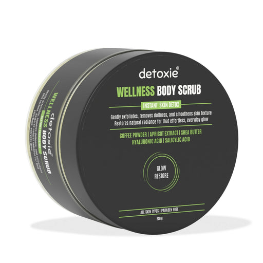 Detoxie Wellness Body Scrub: Glow, Gently.Detoxie’s Wellness Body Scrub is thoughtfully crafted with a blend of Coffee Powder, Apricot Extract, She...