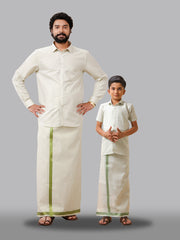 Like Father Like Son Tissue Dhoti & Shirt Combos Green