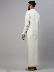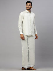Like Father Like Son Tissue ReadyMade Dhoti & Shirt Combo Silver