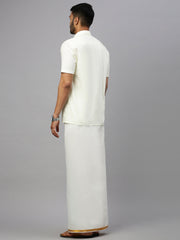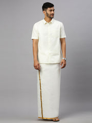 Men 100% Cotton Double Layer Cream Dhoti with 1"Gold Jari Border Arputha