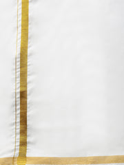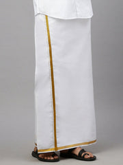 Men 100% Cotton Double Layer White Dhoti with 3/4" Gold Jari Border Good Will