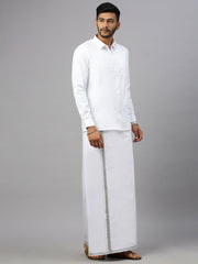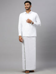 Men 100% Cotton Single Layer White Dhoti with 1/2" Jari Border Silver Storm