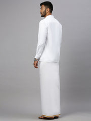 Men Cotton Blend Readymade Double Layer White Dhoti with Gold Jari Border W428
