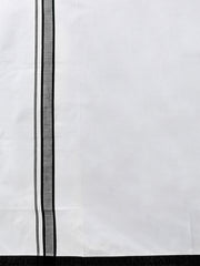 Men Double Layer White Dhoti with Fancy Border Aaral Black