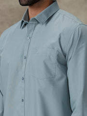 Men Pewter Grey Shirt With Matching Border Dhoti Set Trendy
