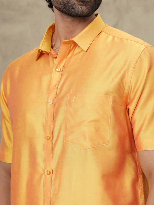 Men Cotton Rich Gold Shirt and Tissue Dhoti Set SMC7 Product Details : Shirt Material : Cotton Rich Colour : Luxor Gold Fit ...