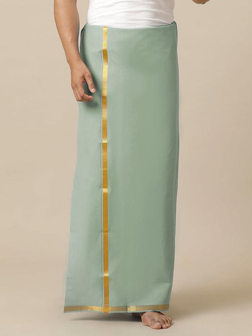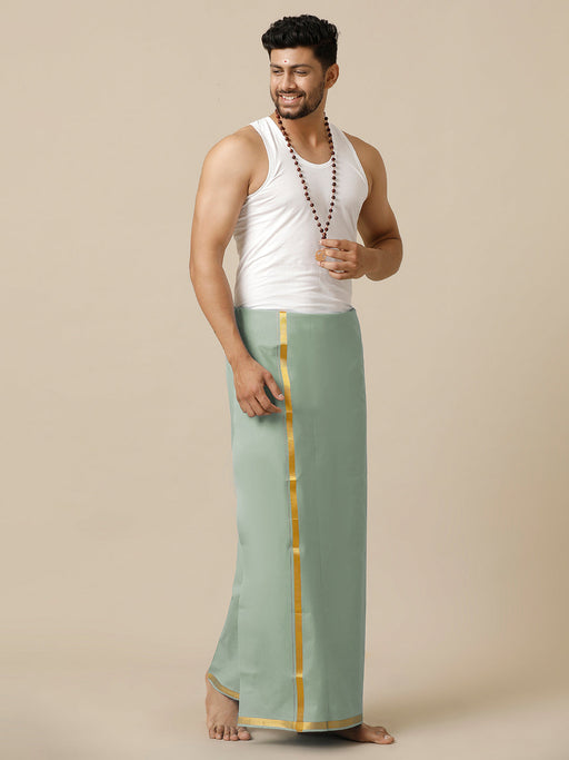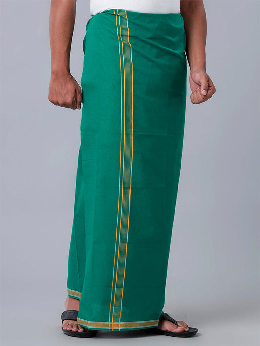 View full detailsMen Cotton Blend Single Layer Green Dhoti with Gold Jari Border Cosmic 10