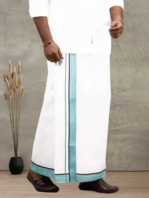 Men 100% Cotton Double Layer White Dhoti with Fancy Border PMF8