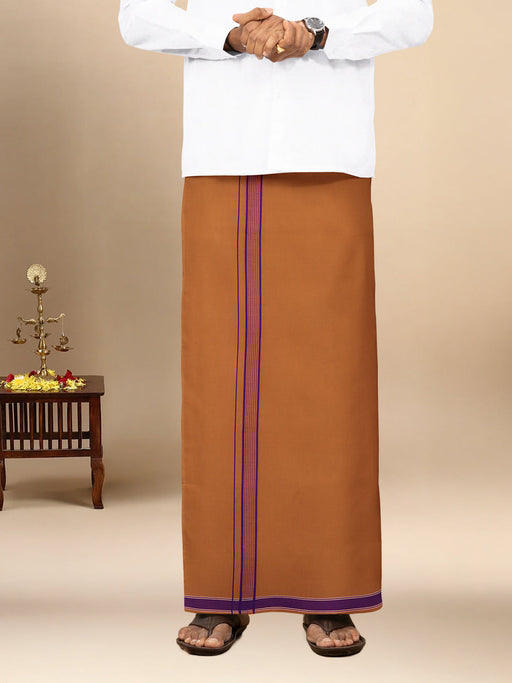 View full detailsMen Cotton Blend Single Layer Kaavi Dhoti with Fancy Border Charming Line Colour 1
