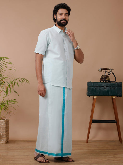 View full detailsLike Father Like Son Tissue Dhoti & Shirt Combo Cyan