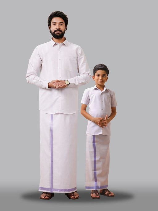 Like Father Like Son Tissue Dhoti & Shirt Combo Lavender "The Exclusive Combo Only for the Online Store" Product Specification: Father : Mate...