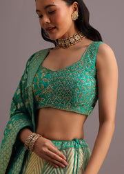 Aqua Green Embroidered Choli With Banarasi Weave Lehenga And Dupatta