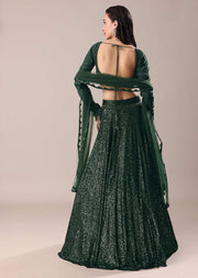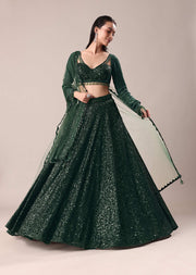 Bottle Green Embroidered Lehenga And Blouse With Dupatta