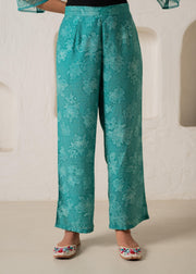Juniper Green Floral Embellished A-Line Kurta Pant And Dupatta Set With Beads & Sequence Work