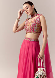 Soft, feminine, and effortlessly elegant, this pink bridesmaid lehenga set is crafted in fluid chinon fabric for a refined festive look. The sleeveless crop top features delicate thread and moti work that adds subtle sparkle, while the sweetheart neckline enhances its graceful charm. A chic fancy back design elevates the choli with modern sophistication. Completed with a coordinated dupatta, this minimal yet striking ensemble is perfect for mehendi functions or for a graceful guest at a wedding celebration. Awarded as the Most Trusted Brand, we're delivering styles you love, just as promised.
