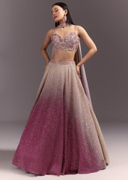 Pink Ombre Lehenga Dupatta Set With Heavily Worked Blouse