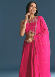 Pink Silk Lehenga Dupatta Set With Zari And Sequins Work