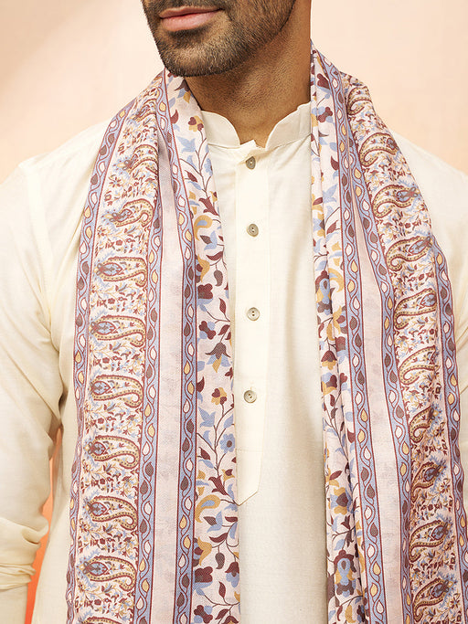 View full detailsMen's Cream Tissue Silk Kurta Pyjama And Dupatta Set