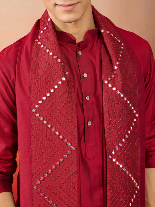 Men's Complete Maroon Kurta Set with Pant and Dupatta