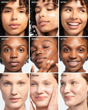 • Pat or massage outward, covering your entire face. Pat or massage in until fully sheer.