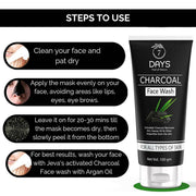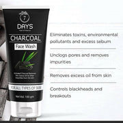 - 7Days charcoal facewash is the ultimate solution for healthy and glowing skin. Activated charcoal has unique properties in that it draws out impurities, dirt, sweat, excess oil, and makeup thereby giving a clean look to the skin. As it does not contain any chemicals it leaves your skin feeling soft and smooth. Natural extracts and ingredients repair skin from within.