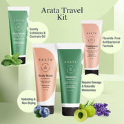Nourish your skin and hair with our travel-ready collection of clean wellness essentials. Formulated with all-natural, highly effective ingredients, this travel kit gives you an intensive dose of plant-powered goodness on the go. Includes our Toothpaste (50ml), Face Wash (50ml), Hydrating Shampoo (75ml), and Body Wash (75ml).