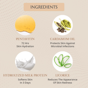 • Aloe Vera, Cardamom Oil, Hydrolysed Milk Protein, Pentavitin
