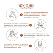 • Wet your face by splashing some lukewarm water on it. Take a coin-sized amount of face wash on your palm and add some water to it. Rub your hands together to lather it up. massage it into your wet face in circular motions. Spend about 45-60 seconds on the different areas of your face – cheeks, t-zone, forehead, and chin. Don’t forget to wash your neck too! Rinse your face with some lukewarm water, once again to remove the face wash off of it. Make sure you’re gentle around the eyes. Lock in the goodness of your face wash by following it up with Avimee moisturizer or serum.