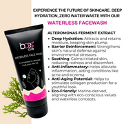 Baes Club Waterless Face Wash is designed to remove pollutants such as PM 2.5 without the need for water. It features an innovative formula enriched with Alteromonas extract, lecithin, and sodium acrylate copolymer, making it effective and 100% alcohol-free.