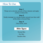 - Pump out a coin-size amount of face cleanser and apply it evenly on damp skin