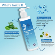 - This intensely hydrating cleanser is a tall drink of water for your skin. Formulated with 12% hyaluronic acid, the ultimate hydrator that can hold up to 1,000 times its weight in water, this soothing face wash delivers a surge of moisture to soften skin and plump fine lines. Your complexion will emerge soft, smooth, and years younger, and thirsty skin will finally get the drink it's been craving