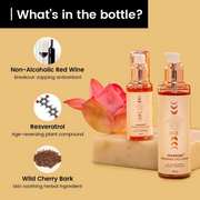 - Your skin drinks up the antioxidant blend of non-alcoholic red wine, resveratrol, and wild cherry bark: Formulated with refreshing ingredients. Non-alcoholic red wine is rich in antioxidants like natural fruit AHAs. Resveratrol is derived from grapes to help neutralize free radical damage. Wild cherry bark is known to be a skin-soothing herbal ingredient that is ideal for a renewing face wash.