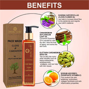 Fights Acne & Cleanse: Our Face wash containsClovewhich is quite effective for curing acne as it contains the compound eugenol that has antibacterial properties. It can clear cystic acne, kill infections, acne bacteria, and helps in reducing swelling and redness. It also helps to remove blemishes and scars making your skin healthier and clearer.